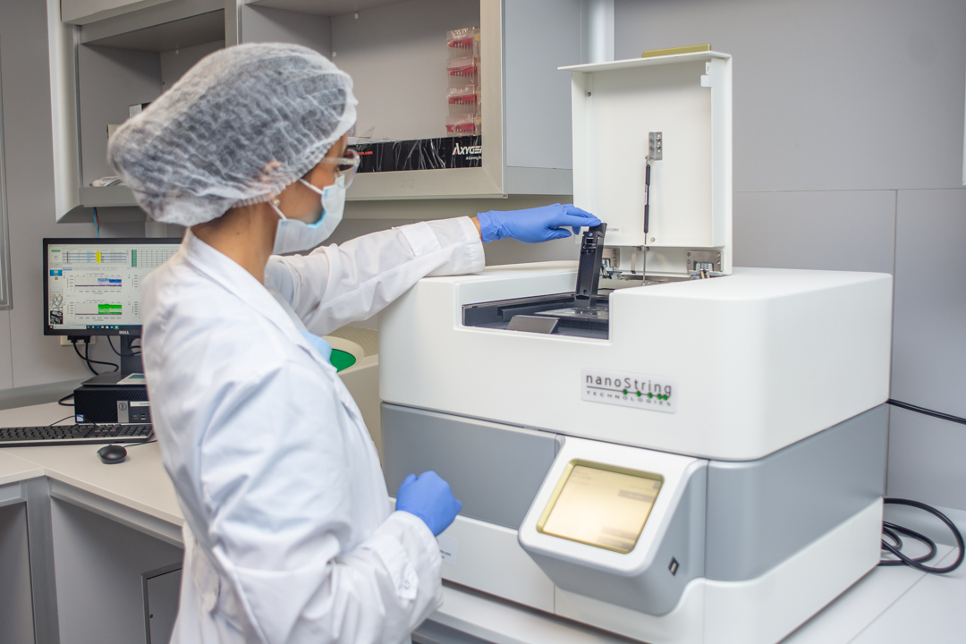 Utilizando la muestra de tejido mamario obtenida en la cirugía, Prosigna analiza la expresión de 50 genes asociados a la biología del cáncer de mama (PAM50), a través de la tecnología nCounter®️ (NanoString®️ Dx), un método automatizado y altamente preciso.